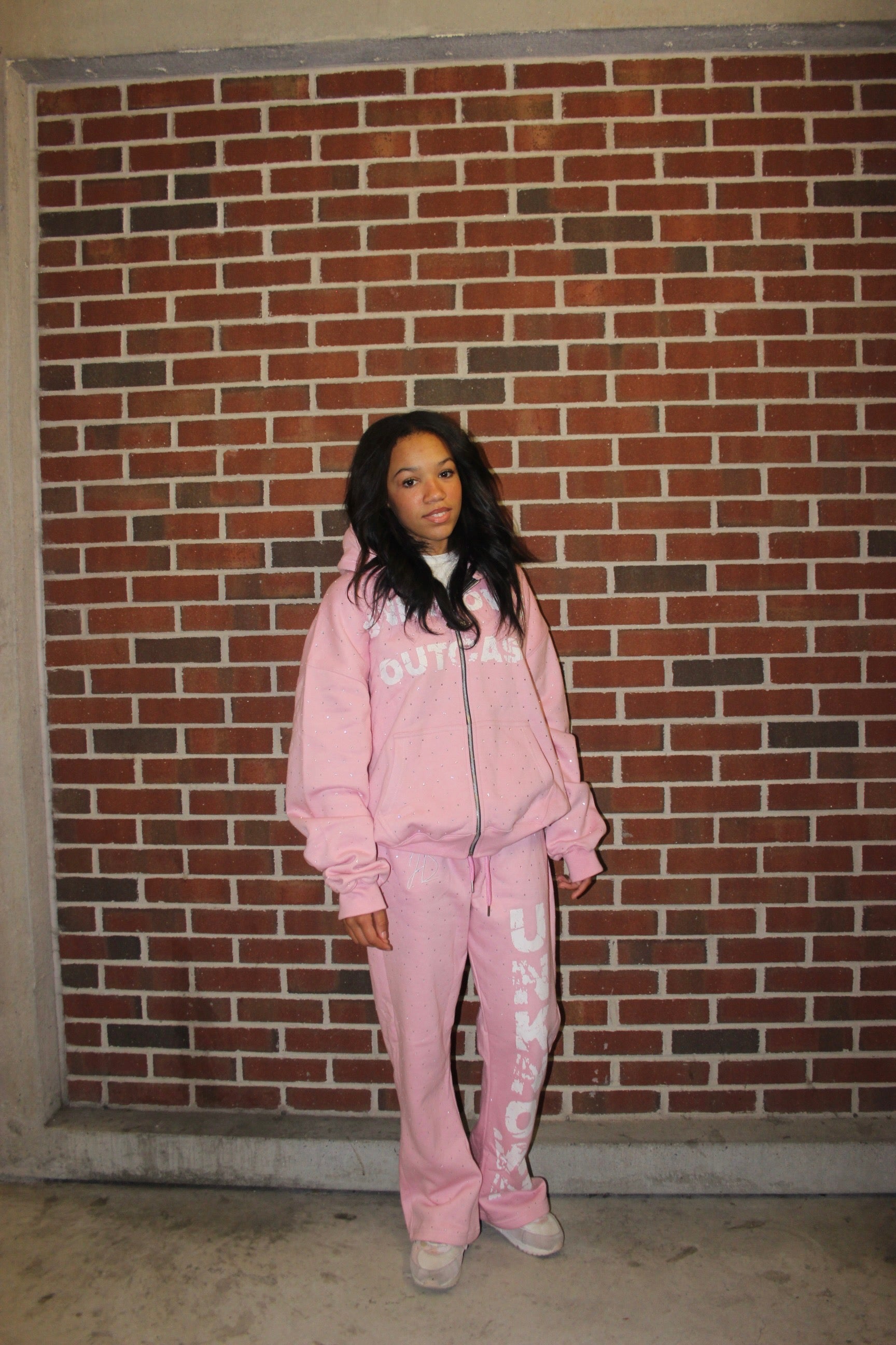 For those who enjoy pink and want to make a statement, the Unknown Outcast Tracksuit (Pink) is the perfect choice. Designed for those who stand out, this tracksuit offers both comfort and style. With its oversized fit and sparkling material, it's a standout piece that represents individuality and strength. Whether you choose this tracksuit by choice or circumstance, it will help you carve your own path and confidently embrace your uniqueness.